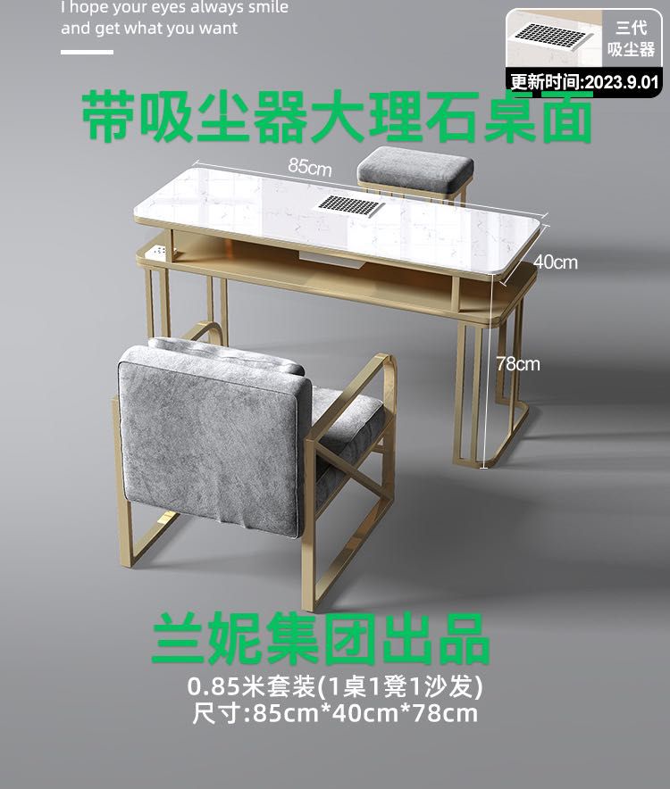 MESA MANICURA CON ASPIRADORA 85CM DORADO (85*40*78CM)MS2022AD-85